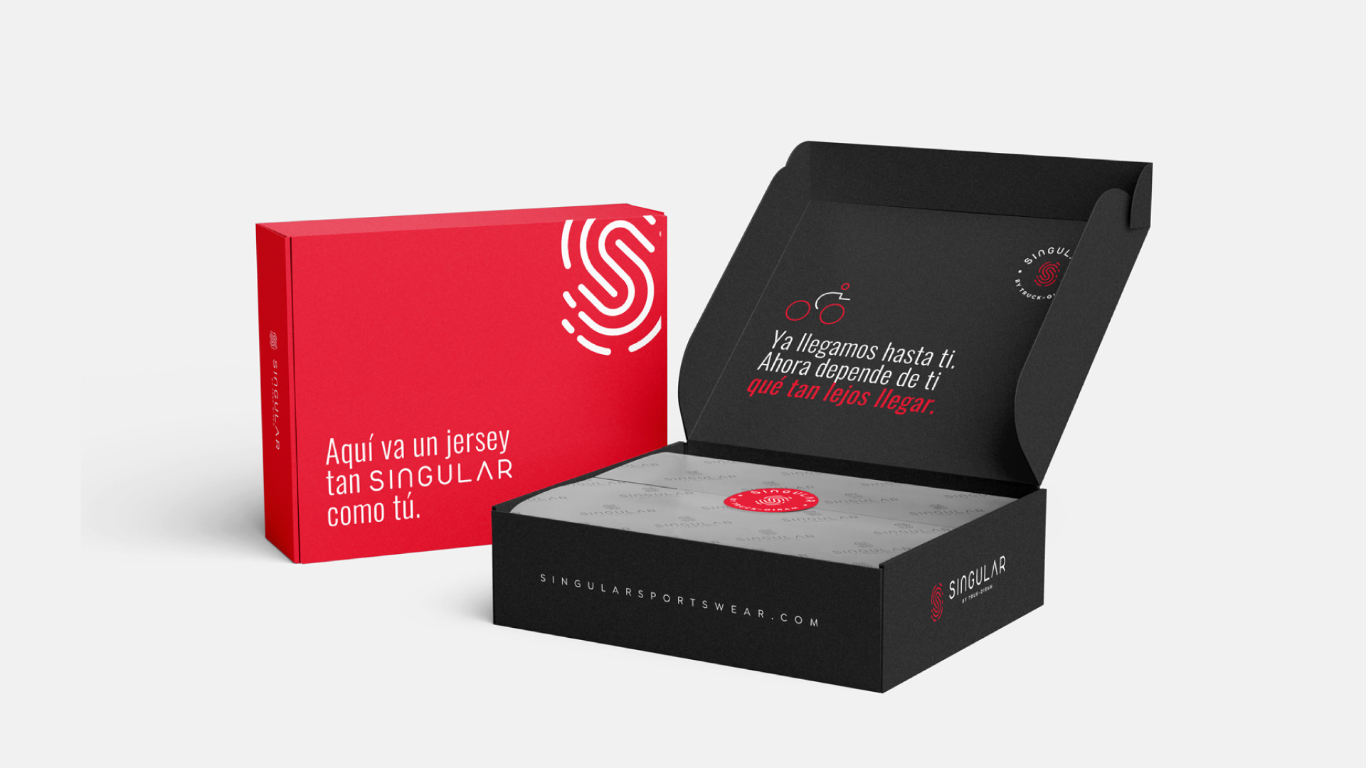 The WOW moment: Nos basamos en este hallazgo para crear un naming y rebranding que lo reflejara. Llegamos a la huella dactilar cómo ese elemento personal e irrepetible que transmitía la esencia de la marca, y a partir de ahí desarrollamos su isotipo. Y así nació Singular, una marca fácil de buscar y recordar que se encarga de llevarle diseños exclusivos a los deportistas.